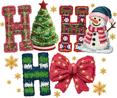 See allThis charming 'Ho Ho Ho' DTF transfer brings a touch of classic holiday cheer to any garment. Featuring intricately designed letters, each 'H' and 'O' showcases unique festive elements: a plush floral 'H', a twinkling Christmas tree 'O', a cozy fair isle 'H' with reindeer, a cheerful snowman 'O', a striped fuzzy 'H', and a radiant red bow 'O' illuminated with string lights. Scattered golden snowflakes complete this warm and inviting ready to press design, perfect for creating heartwarming apparel and gifts. This delightful iron on transfer is perfect for families wanting matching holiday shirts, small businesses creating festive merchandise for Christmas markets, or crafters making personalized gifts. It's an ideal heat transfer design for spreading joy at holiday parties, family gatherings, school events, or as a thoughtful present for teachers, friends, and loved ones. Etsy sellers and boutique owners will find this an excellent addition to their holiday collection, offering a ready-made festive design. Applying this vibrant heat press transfer is simple and efficient. It adheres beautifully to cotton, polyester, cotton-poly blends, and even nylon, making it incredibly versatile. For best results, use a heat press at 300-325°F for 15 seconds with medium pressure, or apply with a household iron following similar guidelines. Our ready to press transfers require no weeding, just peel and press! Transform t-shirts, hoodies, sweatshirts, tote bags, pillow covers, and even baby onesies into festive masterpieces. For lasting durability, wash garments inside out and tumble dry low. Experience superior quality with this direct to film transfer. Each heat press ready design boasts vibrant, full-color printing that captures every fine detail and rich texture, from the fuzzy letters to the twinkling lights. It's crack-resistant, soft to the touch, and avoids the heavy, stiff feel of traditional vinyl. Printed on premium DTF film with a strong adhesive backing, you’re guaranteed professional, durable results that will make your custom t-shirts and apparel stand out throughout the holiday season.