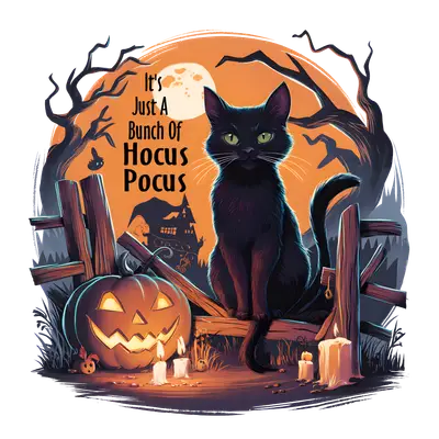 See allCapture the enchanting spirit of Halloween with this whimsical 'It's Just A Bunch Of Hocus Pocus' DTF transfer. Featuring a captivating black cat with luminous green eyes, perched mysteriously on a wooden fence next to a grinning jack-o'-lantern and flickering candles. In the background, a full moon glows against an orange sky, silhouetting spooky bare trees and a haunted house. This ready to press design perfectly blends spooky charm with a touch of magic, ideal for anyone who loves classic Halloween vibes. This playful heat transfer design is perfect for Halloween enthusiasts, cat lovers, and anyone who enjoys a bit of spooky fun during the fall season. It makes an excellent choice for creating unique holiday apparel for trick-or-treating, costume parties, or just everyday festive wear. Small t-shirt businesses, crafters, and individuals looking for a fun iron on transfer to personalize gifts will find this design irresistible. Celebrate the magic of October with a touch of 'hocus pocus' on your favorite items. Applying this vibrant heat press transfer is simple and delivers professional results. It adheres beautifully to cotton, polyester, cotton-poly blends, and even nylon, making it versatile for various projects. Use a heat press at 300-325°F for 15 seconds with medium pressure, or apply with a household iron (follow instructions for firm, even pressure). No weeding is required – just peel and press! Create stunning custom t-shirts, cozy hoodies, trendy tote bags, festive pillow covers, or even unique denim jackets. For lasting durability, wash garments inside out and tumble dry on low heat. Our ready to press transfer boasts vibrant, full-color printing with exceptional detail, ensuring your finished product stands out. The design is crack-resistant and incredibly soft to the touch, avoiding the heavy, stiff feel of traditional vinyl. Each direct to film transfer is produced using premium DTF film and high-quality inks, featuring a strong adhesive backing for easy application and professional, long-lasting results that will impress every time.