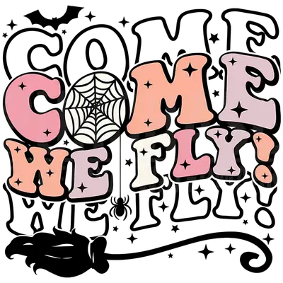 See allStep into the enchanting world of Halloween with our 'Come We Fly!' DTF transfer. This captivating design features the iconic quote from Hocus Pocus, rendered in a groovy, retro-inspired font with charming pastel pink, peach, and lavender hues. Adorned with sparkling star accents, a whimsical spiderweb, a hanging spider, and a classic witch's broomstick, this DTF transfer perfectly captures a playful, witchy vibe. It's a truly unique and ready to press design that blends vintage aesthetics with Halloween charm, making it an instant favorite for spooky season. This delightful design is perfect for Hocus Pocus fans, retro aesthetic lovers, crafters, and small business owners looking to create unique Halloween apparel. Imagine matching shirts for a Halloween movie marathon, a fun accessory for trick-or-treating, or a thoughtful gift for the witchy friend in your life. Use this iron on transfer to create custom outfits for parties, fall festivals, or simply to express your love for classic Halloween movies. It's an ideal heat transfer design for anyone wanting to add a touch of nostalgic magic to their wardrobe. Applying this heat press transfer is a breeze. It works beautifully on a wide range of fabrics including cotton, polyester, cotton-poly blends, and even nylon. For best results, use a heat press at 300-325°F for 15 seconds with medium pressure, or apply with a household iron. No weeding or layering needed – simply peel and press! Create stunning custom t-shirts, cozy hoodies, stylish sweatshirts, practical tote bags, adorable baby onesies, playful aprons, or unique denim jackets. For lasting durability, wash garments inside out in cold water and tumble dry low. Our ready to press transfer offers exceptional quality, featuring vibrant, full-color printing with incredibly fine detail that truly pops. The design is crack-resistant and soft to the touch, providing a professional finish without the heavy, stiff feel of traditional vinyl. Each direct to film transfer is meticulously printed on premium DTF film with a strong, reliable adhesive backing, ensuring easy application and professional-looking results every time. Elevate your apparel with this durable and eye-catching design.
