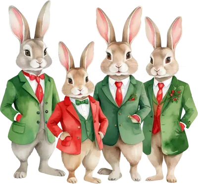 Holiday Bunnies in Suits DTF Transfer - Elegant Christmas Apparel