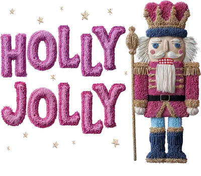 Embrace the holiday spirit with this delightful Holly Jolly Nutcracker DTF transfer. Featuring a charming nutcracker soldier in vibrant pink, gold, and blue, alongside fuzzy pink 'HOLLY JOLLY' text and sparkling stars, this design evokes a cozy, handmade texture reminiscent of yarn or tufting. It’s a wonderfully whimsical and modern take on traditional Christmas imagery, making it a perfect ready to press design for adding cheer to your apparel this season. This unique iron on transfer is ideal for anyone looking to create distinctive holiday wear. Whether you're a small business owner crafting custom Christmas shirts for your boutique, a crafter making festive gifts, or a family wanting matching Holly Jolly outfits, this heat transfer design is sure to impress. It’s a fantastic choice for Christmas parties, winter events, or simply spreading holiday cheer, appealing to those who love a playful and colorful approach to festive decor. Applying this heat press transfer is incredibly simple. It works beautifully on a wide range of materials including cotton, polyester, cotton-poly blends, and even nylon. Just use a heat press at 300-325°F for 15 seconds with medium pressure, or apply with a household iron. No tedious weeding is required – just peel and press! Create custom t-shirts, cozy hoodies, festive sweatshirts, practical tote bags, adorable baby onesies, holiday aprons, or unique pillow covers. For best results and lasting durability, wash garments inside out and tumble dry on low heat. Experience premium quality with this ready to press transfer. Each direct to film transfer boasts vibrant, full-color printing with exceptional detail, capturing the unique textural look of the original design. It's crack-resistant and soft to the touch, ensuring a professional finish without the heavy feel of traditional vinyl. Printed on high-grade DTF film with a strong adhesive backing, you can achieve perfect, long-lasting results every single time.