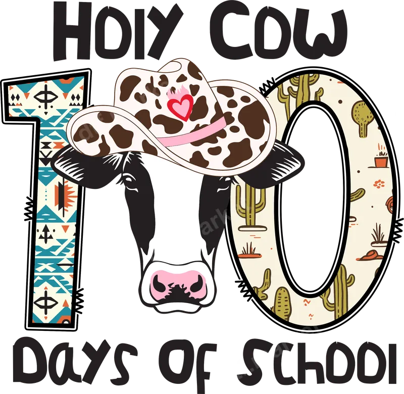 See allMark the milestone 100th day of school with our charming "Holy Cow 100 Days of School" DTF transfer. This delightful design features a cute cow wearing a spotted cowboy hat, with the "100" numbers artfully decorated in vibrant southwestern and playful cactus patterns. It’s a fun and festive direct to film transfer, perfectly capturing the joy and achievement of reaching 100 days. This heat press ready design is sure to bring smiles to any school celebration. This ready to press transfer is ideal for elementary students, dedicated teachers, and proud parents looking to create custom apparel. It's a fantastic choice for 100 Days of School celebrations, school spirit days, or as a thoughtful gift for educators. Imagine the excitement of students wearing this unique design, or a teacher sporting it on their special day, making it a memorable occasion for everyone involved. Applying this high-quality heat transfer is simple with either a professional heat press or a household iron. For best results, use a heat press at 300-325°F for 15 seconds with medium pressure. This versatile design adheres beautifully to a wide range of materials, including cotton, polyester, and their blends, making it perfect for t-shirts, sweatshirts, tote bags, and more. Best of all, there’s no tedious weeding required! Our professional-grade DTF transfers deliver exceptional durability and a soft, smooth feel. The colors are incredibly vibrant and designed to resist cracking and fading, ensuring your customized apparel looks fantastic wash after wash. Each iron on transfer is printed with strong adhesive on premium film, providing a professional finish that truly lasts. Elevate your garments with this distinctive and celebratory apparel transfer.