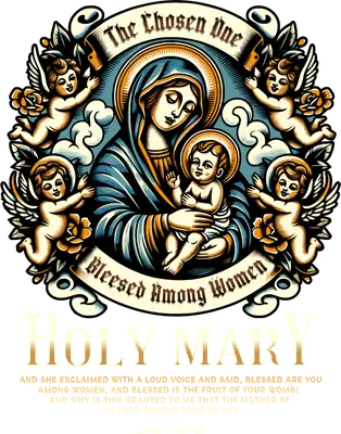 See allThis deeply spiritual DTF transfer features a classic depiction of the Virgin Mary cradling baby Jesus, surrounded by joyful cherubs, elegant roses, and ornate banners proclaiming "The Chosen One" and "Blessed Among Women." Below, "HOLY MARY" is prominently displayed, accompanied by the profound scripture of Luke 1:42-43. Rendered in a timeless, vintage-inspired art style with rich blues, warm golds, and creamy accents, this design evokes reverence and grace. It arrives as a ready to press transfer, making it simple to infuse your garments with faith and devotion. This powerful image is perfect for devout Christians, Catholics, and anyone seeking to express their faith through wearable art. It makes an incredibly thoughtful gift for Mother's Day, Easter, Christmas, First Communions, Confirmations, baptisms, or as a comforting gesture for someone dear. Small t-shirt businesses, Etsy sellers focusing on religious apparel, and crafters creating custom faith-based gifts will find this an invaluable heat transfer design. Imagine it on shirts for church retreats, youth groups, or as a personal declaration of belief. Applying this high-quality heat press transfer is straightforward, allowing you to personalize a wide range of items. It adheres beautifully to cotton, polyester, cotton-poly blends, and even nylon fabrics. For best results, use a heat press at 300-325°F for 15 seconds with medium pressure, or follow instructions for a household iron. There's no tedious weeding required—simply peel the backing and press! Transform custom t-shirts, cozy hoodies, sturdy tote bags, spiritual pillow covers, or even baby onesies and denim jackets into cherished items. For lasting durability, wash garments inside out and tumble dry low. Our ready to press transfer ensures vibrant, full-color printing with exceptional detail, capturing every nuance of this sacred artwork. The design is crack-resistant and boasts a soft feel, unlike heavy vinyl alternatives. Each direct to film transfer is meticulously printed on premium DTF film, engineered with a strong adhesive backing to guarantee professional, long-lasting results every single time you apply it.