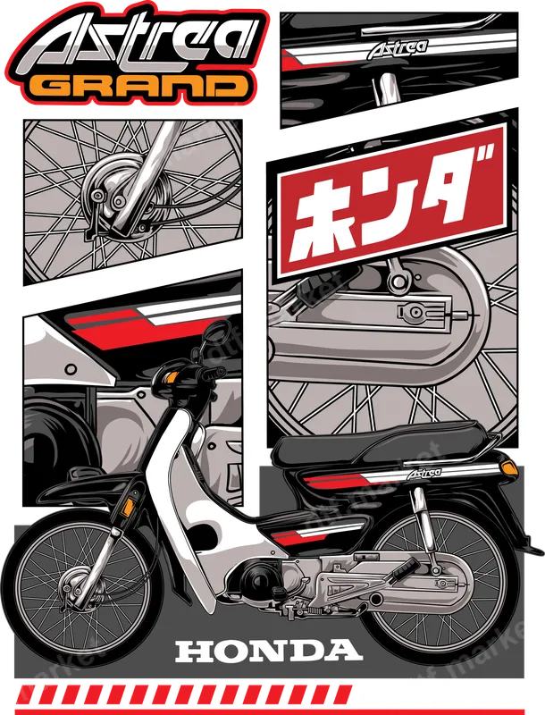 Honda Astrea Grand Motorcycle DTF Transfer | Retro Scooter Design
