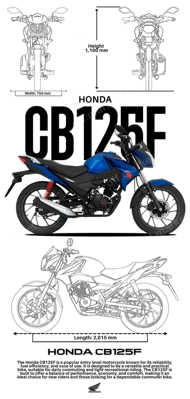 Honda CB125F Motorcycle Blueprint & Photo DTF Transfer