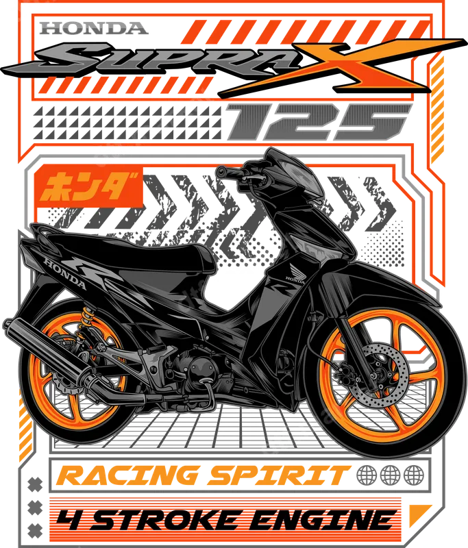 Honda Supra X 125 Racing Spirit DTF Transfer | Motorcycle Engine Design