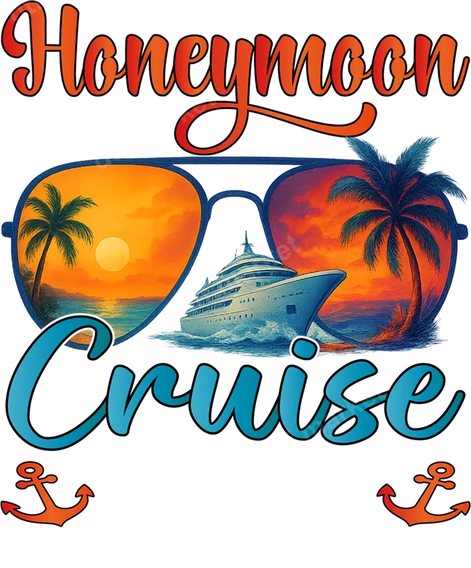 See allThis vibrant DTF transfer captures the essence of a dream post-nuptial escape, featuring bold "Honeymoon Cruise" text. The design is centered around stylish aviator sunglasses, with each lens reflecting a breathtaking tropical sunset scene, complete with swaying palm trees and a majestic cruise ship. Flanking the bottom are two charming orange anchors, adding a nautical touch. This ready to press design evokes feelings of romance, adventure, and relaxation, perfect for celebrating new beginnings. This unique heat transfer is ideal for newlyweds, engaged couples, or anyone celebrating their honeymoon, anniversary, or a romantic cruise vacation. It's a fantastic way to create matching shirts for a honeymoon trip, surprise your partner with custom apparel, or commemorate a special journey. Beyond personal use, it makes a thoughtful gift for bridal showers, engagement parties, or as a fun memento for a couples' getaway. Applying this iron on transfer is straightforward, making customization accessible. Our high-quality heat press design works beautifully on cotton, polyester, and blends. For best results, use a heat press at 300-325°F for 15 seconds with medium pressure, followed by a warm or cool peel. If a heat press isn't available, a household iron can also be used. No tedious weeding required, so you can transform your garments quickly. Experience professional-grade results with our premium DTF transfers. Each transfer delivers exceptionally vibrant colors, ensuring your design truly pops. The advanced film technology provides a soft touch that feels integrated with the fabric. Enjoy a durable, crack-resistant finish that withstands countless washes, maintaining its pristine look. Our direct to film transfer ensures strong adhesion and long-lasting wear, making your personalized items cherished for years.