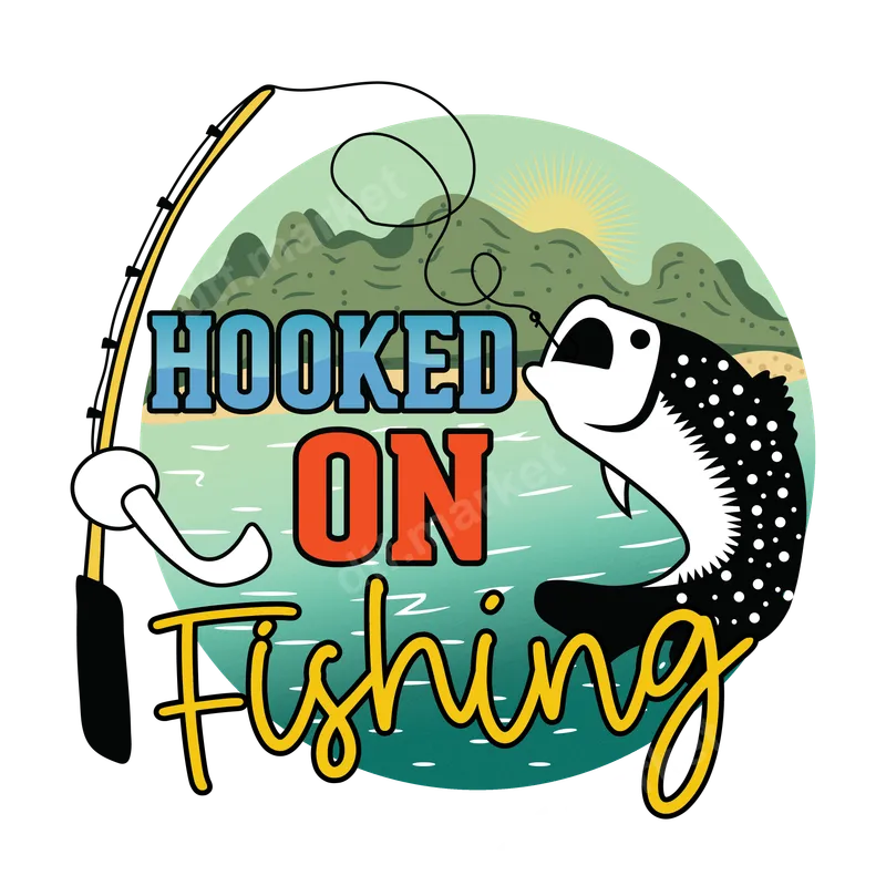 Hooked On Fishing DTF Transfer | Ready to Press Fishing Rod & Fish Design
