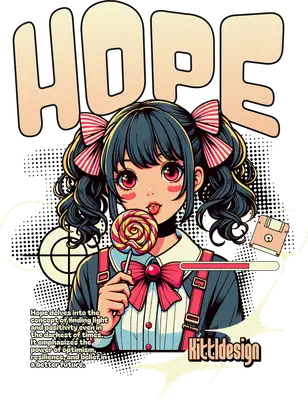 Embody a spirit of optimism with this vibrant DTF transfer featuring a captivating anime-style girl. With striking big eyes, pigtails adorned with striped bows, and a colorful lollipop, this design exudes a cheerful yet slightly retro vibe. The word "HOPE" boldly arches above her, accompanied by thoughtful text emphasizing resilience and finding light in challenging times. This full-color graphic is a ready to press design that captures the unique blend of Japanese animation aesthetics and classic pop art elements. This delightful iron on transfer is perfect for anime and manga enthusiasts, Gen Z fashionistas, and anyone who appreciates cute, inspirational art. It makes an excellent gift for friends, daughters, or fellow crafters looking to add a positive message to their wardrobe. Small t-shirt businesses and Etsy sellers can leverage this unique heat transfer design to create best-selling apparel. Ideal for everyday wear, back-to-school outfits, or as a thoughtful birthday present, this design brings joy and encouragement. Applying this heat press transfer is simple and mess-free. It works beautifully on a wide range of fabrics including cotton, polyester, and blends, and even nylon. Just use a heat press at 300-325°F for 15 seconds with medium pressure, or apply with a household iron. There's no tedious weeding required—simply peel and press for instant results. Use it to create stunning custom t-shirts, cozy hoodies, stylish tote bags, trendy denim jackets, unique baby onesies, or decorative pillow covers. Experience professional-grade quality with every print. This ready to press transfer boasts vibrant, full-color printing that captures every fine detail of the artwork. The design is crack-resistant, soft to the touch, and avoids the heavy, stiff feel often associated with vinyl transfers. Each direct to film transfer is produced on premium DTF film with a robust adhesive backing, ensuring long-lasting durability and a flawless finish that stands up to repeated washes (wash inside out, tumble dry low).