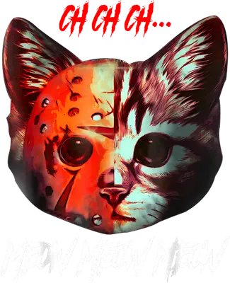 Horror Jason Mask Cat DTF Transfer - Ch Ch Ch Meow Funny Kitty Heat Press Design