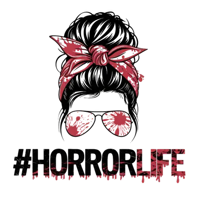 Horror Life Messy Bun DTF Transfer | Bloody Aviator Sunglasses Design