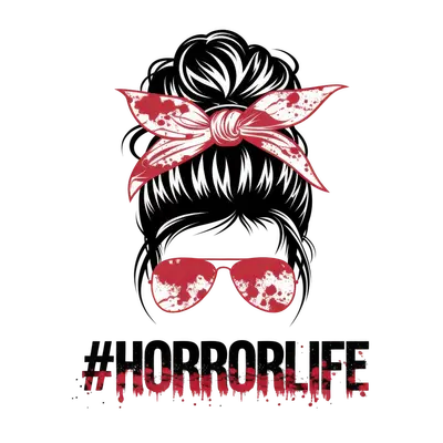 Horror Life Messy Bun DTF Transfer with Blood Splatter Design