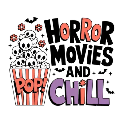 Horror Movies and Chill DTF Transfer | Skull Popcorn Heat Press Ready