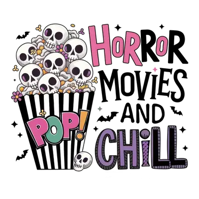 Horror Movies & Chill Popcorn Skulls DTF Transfer - Ready to Press
