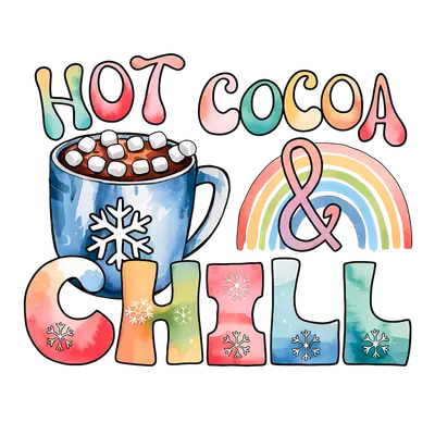 Hot Cocoa & Chill DTF Transfer - Cozy Winter Rainbow Snowflake Design