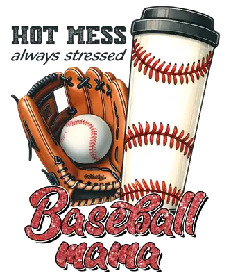 See allShow off your baseball mom spirit with this relatable and fun "Hot Mess Baseball Mama" DTF transfer. Featuring a classic baseball glove with a ball, a baseball-stitched travel coffee cup, and bold, glittery red text, this design captures the essence of every dedicated sports mom. The phrase "HOT MESS always stressed" adds a humorous touch, making this the perfect ready to press design for game days or everyday wear. This vibrant design is perfect for baseball moms, softball moms, or any proud parent navigating the exciting, sometimes chaotic, world of youth sports. It makes an excellent iron on transfer gift for Mother's Day, birthdays, or as a thoughtful team parent appreciation item. Small t-shirt businesses and Etsy sellers specializing in custom sports apparel will find this heat transfer design a popular choice for their inventory, appealing to customers looking for unique and expressive sports mom gear. Applying this heat press transfer is simple and professional. It works beautifully on a wide range of fabrics including cotton, polyester, cotton-poly blends, and even nylon. Just use a heat press at 300-325°F for 15 seconds with medium pressure, then peel. No weeding or intricate layering required! Ideal for custom t-shirts, hoodies, sweatshirts, tote bags, aprons, and even denim jackets. For best results and lasting durability, wash garments inside out and tumble dry low. Experience superior quality with this ready to press transfer, featuring vibrant, full-color printing and exceptional fine detail that stands out. Our designs are crack-resistant, offer a soft hand feel, and avoid the heavy, stiff texture of traditional vinyl. Each direct to film transfer is produced on premium DTF film with a strong adhesive backing, ensuring a professional, long-lasting finish on all your apparel projects.