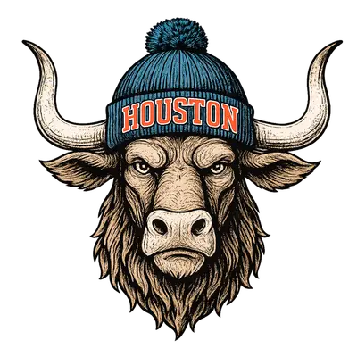 Houston Bull in Beanie DTF Transfer | Ready to Press Apparel Design