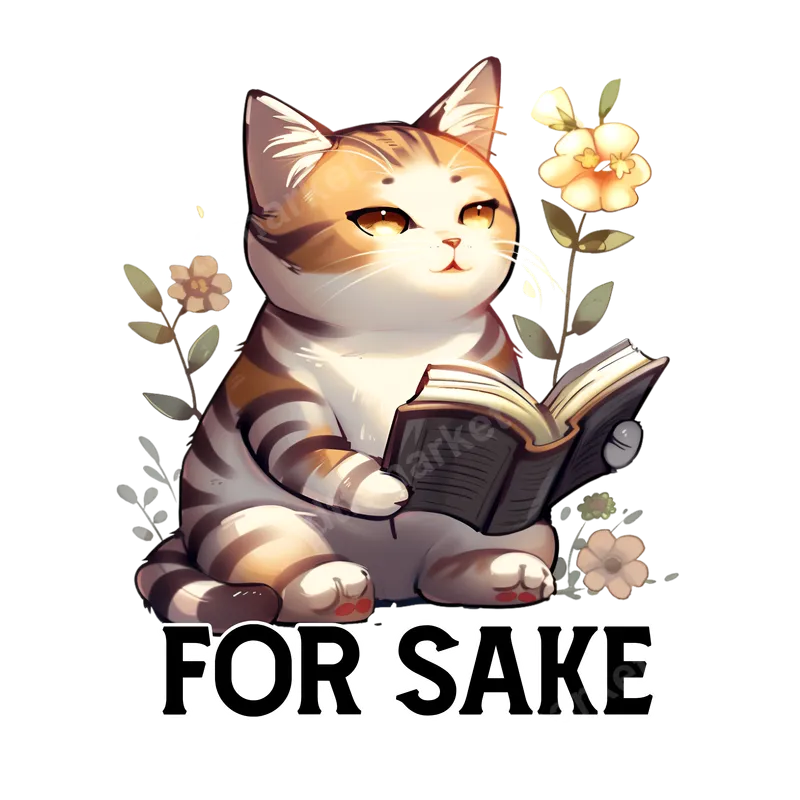 Humorous Cat Reading Book 'FOR SAKE' DTF Transfer