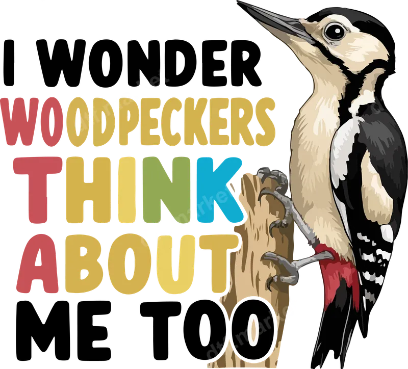 Humorous Woodpecker DTF Transfer "I Wonder Woodpeckers Think About Me Too"