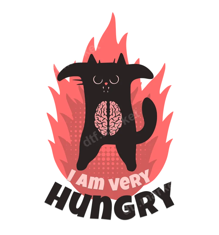 See allThis vibrant "I Am Very Hungry" DTF transfer features an adorably spooky black cat with a visible brain, standing amidst fiery red flames. This unique design blends cute feline charm with a touch of zombie humor, making it a perfect statement piece. It’s a ready to press design, ensuring you can quickly and easily add personality to your apparel. Ideal for cat enthusiasts, Halloween lovers, and anyone with a sarcastic sense of humor, this heat press transfer is fantastic for personalizing garments for fall festivals, casual wear, or as a fun gift. Surprise a friend or family member with a custom t-shirt transfer that truly stands out. Applying this high-quality iron on transfer is simple on a wide range of fabrics, including cotton, polyester, and blends. Use a heat press at 300-325°F for 15 seconds with medium pressure, or follow instructions for a household iron. Best of all, there’s no tedious weeding required, so your custom apparel project is hassle-free. Crafted using professional DTF film, this heat press design ensures vivid colors, excellent crack resistance, and a soft-to-touch finish that feels great on any garment. The strong adhesive guarantees durability, making your apparel transfer last through countless washes and wears.