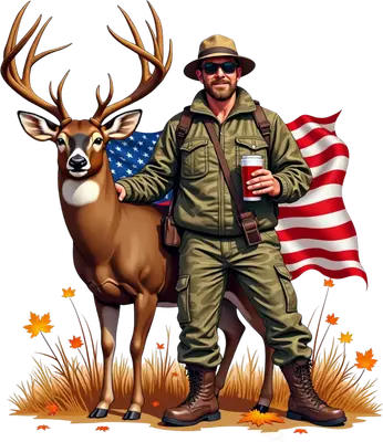 See allThis vibrant DTF transfer showcases a proud hunter in camouflage, sunglasses, and a hat, standing confidently beside a magnificent deer with large antlers. A bold American flag waves patriotically in the background, set against a ground scattered with autumn leaves. This striking, ready to press transfer perfectly captures the spirit of the hunt and national pride, making a strong statement on any apparel. Ideal for dedicated hunters, proud patriots, outdoorsmen, and veterans, this design makes an excellent gift for Father's Day, Veterans Day, or birthdays. Small t-shirt businesses and crafters will find this a popular iron on transfer, perfect for creating unique apparel for hunting trips, patriotic events, or everyday wear. Its broad appeal makes it a versatile heat transfer design for various customers. This durable heat press transfer applies easily to cotton, polyester, blends, and even nylon. Use a heat press (300-325°F, 15 seconds, medium pressure) or a household iron. No weeding needed—just peel and press! It's perfect for custom t-shirt transfers, hoodies, sweatshirts, denim jackets, tote bags, and hats. Wash inside out, tumble dry low for long-lasting vibrancy. Experience premium quality with this full-color, finely detailed ready to press design. It's crack-resistant, soft to the touch, and free from the heavy feel of traditional vinyl. Each direct to film transfer is printed on high-grade DTF film with a strong adhesive, ensuring professional results that endure countless washes and wear, making your apparel stand out.