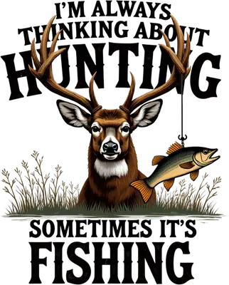 Hunting Fishing Quote DTF Transfer - Always Thinking Deer Fish