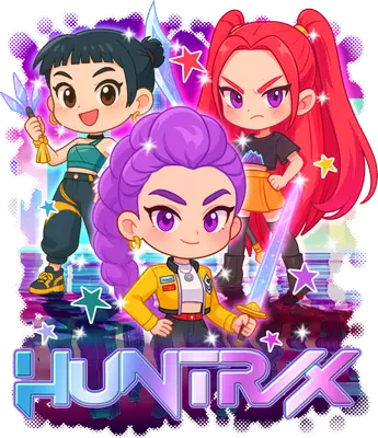 HUNTRX Anime Chibi Girl Squad DTF Transfer - Futuristic Warrior Iron On