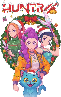 HUNTRX Anime Girls & Cat Christmas DTF Transfer | Festive Holiday Ready to Press