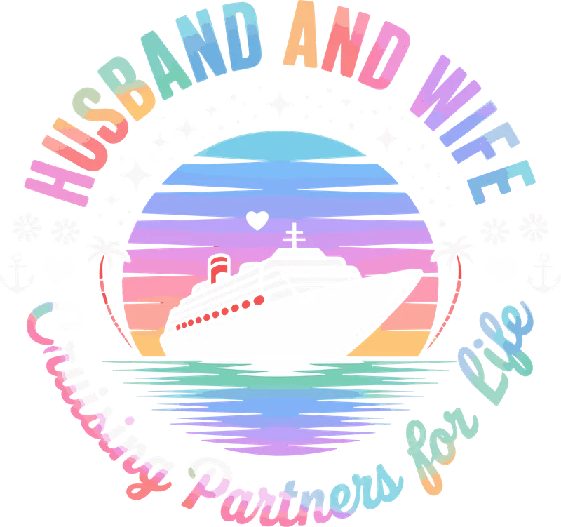 See allThis vibrant DTF transfer captures the essence of enduring love and adventure with its "Husband and Wife Cruising Partners for Life" design. Featuring a classic cruise ship sailing against a picturesque pastel sunset, complete with shimmering water, palm trees, and subtle nautical elements, this ready to press graphic evokes sweet memories of romantic journeys. The retro-inspired color palette and cheerful typography make it a standout piece perfect for celebrating your special bond. Ideal for married couples, honeymooners, or anyone celebrating a significant anniversary, this design is perfect for matching apparel. Surprise your spouse with a thoughtful gift for your next cruise vacation, Valentine's Day, or just because. It's also a fantastic choice for couples who love to travel and want to showcase their shared passion in a stylish, coordinated way. Applying this heat press transfer is a breeze, making it suitable for both professional shops and DIY crafters. It works beautifully on a wide range of fabrics, including cotton, polyester, and most fabric blends. Simply use a heat press at 300-325°F for 15 seconds with medium pressure, or even a household iron for smaller projects. There's no tedious weeding required, so your custom apparel is ready in minutes. Crafted using premium DTF film and inks, this apparel transfer promises exceptional durability and a stunning finish. The colors remain incredibly vibrant wash after wash, resisting cracking and peeling, ensuring your cherished design looks great for years to come. Enjoy a soft-to-touch feel that integrates seamlessly into the garment, providing a professional-quality, long-lasting iron on transfer for all your creative projects.