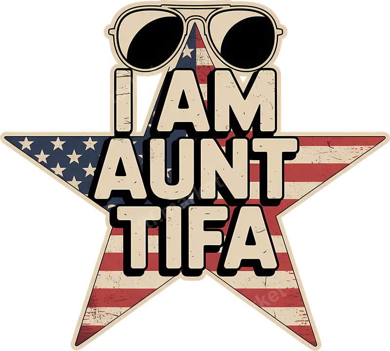 See allThis bold 'I Am Aunt Tifa' DTF transfer features a distressed American flag star background, topped with cool aviator sunglasses and prominent, slightly worn text. It's a statement piece for those with a strong voice and a sense of humor. This direct to film transfer is ready to press, making it easy to add personality to your apparel and accessories. Ideal for anyone who identifies with a progressive stance, loves edgy humor, or wants to make a unique statement at rallies, social gatherings, or everyday wear. This heat press design makes a fantastic gift for politically-minded friends, outspoken family, or anyone proud to be an 'Aunt Tifa'. Perfect for personalizing protest gear or casual outfits. Our premium DTF transfers adhere beautifully to cotton, polyester, and blends. Applying this iron on transfer is simple with a heat press: 300-325°F for 15 seconds, medium pressure, then cold peel. A household iron can also be used with care. No tedious weeding required, saving you time and effort on your apparel transfer. Experience superior quality with our vibrant, crack-resistant DTF transfers that maintain softness and integrity wash after wash. Each heat press transfer is printed on professional-grade DTF film using high-quality inks and strong adhesive powder, ensuring a durable and long-lasting application. Elevate your wardrobe with a custom transfer that truly stands out.