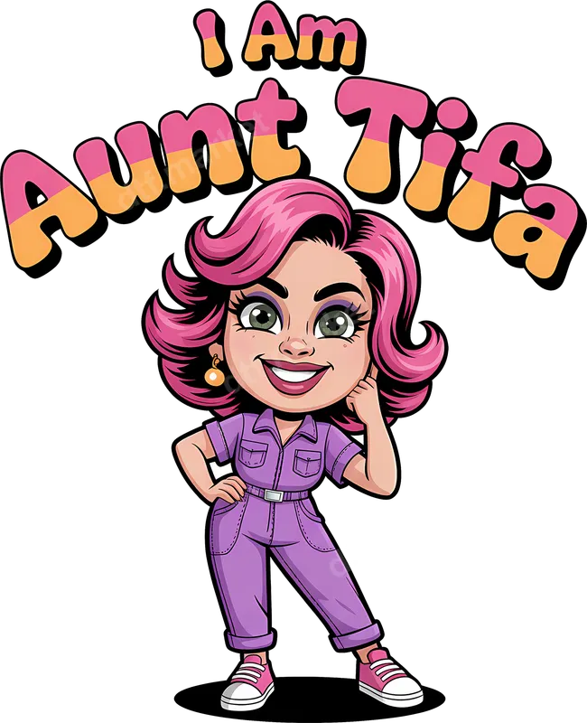 I Am Aunt Tifa Sassy Pink Hair Cartoon Character DTF Transfer
