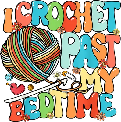 See allThe design features the playful phrase "I Crochet Past My Bedtime" in a retro, bubbly font with a kaleidoscope of vibrant colors including orange, teal, green, and yellow. A prominent ball of rainbow-striped yarn anchors the left, accompanied by a classic crochet hook, safety pin, and small, whimsical floral accents, buttons, and a heart-shaped pin cushion. This charming DTF transfer captures the essence of a beloved craft with a touch of humor and retro flair, making it a perfect ready to press statement piece for any textile. This delightful design is perfect for crochet enthusiasts, knitting fanatics, yarn shop owners, and anyone who loves to craft past their bedtime! It makes an excellent gift for Mother's Day, birthdays, Christmas, or just because, for the dedicated crafter in your life. Small t-shirt businesses and Etsy sellers can offer unique apparel to their creative customers with this eye-catching iron on transfer. It’s also ideal for crochet club shirts, craft fair outfits, or simply expressing your passion with a fun heat transfer design. Applying this heat press transfer is a breeze on a wide range of materials, including cotton, polyester, cotton-poly blends, and even nylon. Achieve professional results using a heat press (300-325°F for 15 seconds with medium pressure) or a household iron. Say goodbye to weeding; simply peel and press! It's perfect for creating custom t-shirts, cozy hoodies, stylish sweatshirts, practical tote bags, adorable baby onesies, durable aprons, or personalized denim jackets. For long-lasting wear, wash inside out and tumble dry on low. Experience superior quality with this ready to press transfer, featuring vibrant, full-color printing that captures every fine detail of the design. Our transfers are crack-resistant and boast a soft, lightweight feel that won't give you that heavy vinyl sensation. Each direct to film transfer is meticulously printed on premium DTF film, complete with a strong adhesive backing to ensure professional, durable results on all your projects, every single time.