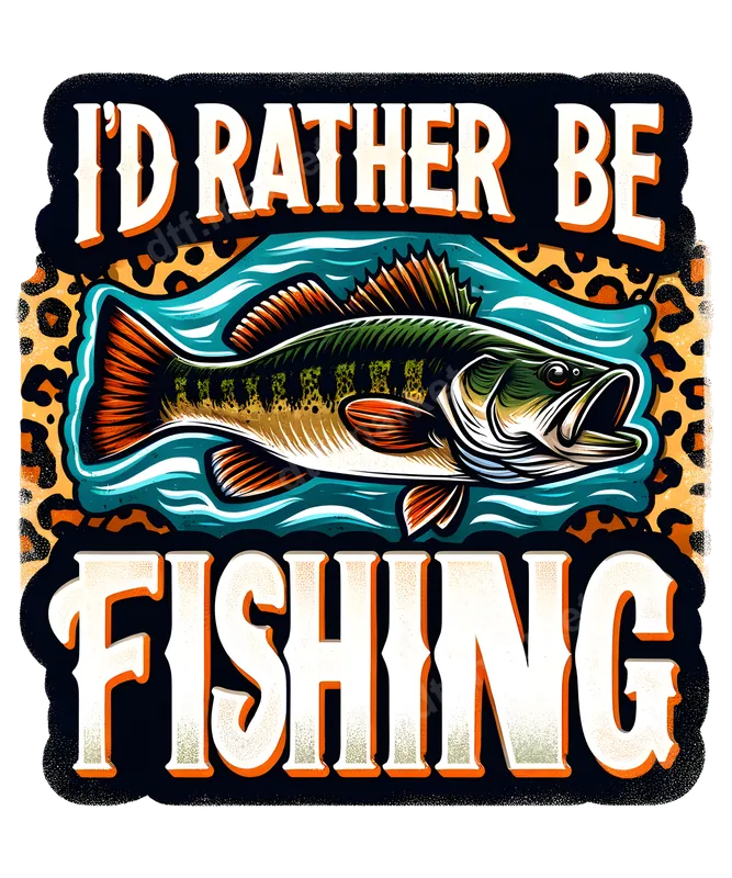 I'd Rather Be Fishing DTF Transfer | Bass Fish Leopard Print Design