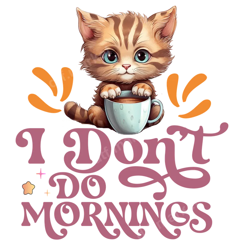 I Don't Do Mornings Cute Kitten Coffee DTF Transfer