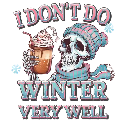 Dive into the frosty season with a chuckle thanks to our "I Don't Do Winter Very Well" DTF transfer. This humorous design features a charmingly disgruntled skeleton, bundled up in a cozy blue and pink striped beanie and matching scarf, clutching a warm, whipped-cream-topped coffee. It perfectly captures the relatable struggle of those who find winter a bit too chilly. This vibrant, full-color graphic is a ready to press design, bringing instant personality to any garment. This unique design is perfect for anyone who prefers warm weather, cozy beverages, or just loves a good sarcastic statement during the colder months. It makes an ideal gift for friends, family, or colleagues who constantly complain about the cold, or for small boutique owners looking for trendy winter apparel. Crafters and Etsy sellers will find this iron on transfer a popular choice for custom shirts, while individuals can express their chilly sentiments with a fun heat transfer design for personal wear. Applying this heat press transfer is a breeze, compatible with cotton, polyester, cotton-poly blends, and even nylon fabrics. Achieve professional results using a heat press at 300-325°F for 15 seconds with medium pressure, or easily apply with a household iron. Forget tedious weeding; just peel and press! It's perfect for creating custom t-shirts, hoodies, sweatshirts, tote bags, pillow covers, baby onesies, aprons, and denim jackets, instantly upgrading any fabric item. Our ready to press transfer boasts exceptional quality with vibrant, full-color printing and intricate details that truly pop. Enjoy a crack-resistant finish that's soft to the touch, unlike heavy vinyl alternatives. Each direct to film transfer is printed on premium DTF film, ensuring a strong adhesive backing for consistent, professional application and long-lasting durability, wash after wash.
