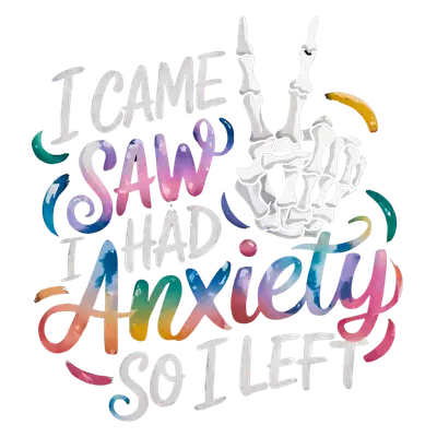 Express your relatable social sentiment with this witty 'I Came I Saw I Had Anxiety So I Left' DTF transfer. This unique design combines a playful white skeleton hand flashing a peace sign with bold typography. The words 'SAW' and 'Anxiety' pop with a vibrant watercolor rainbow effect, adding a touch of artistic flair to the otherwise stark white text. It’s a perfect ready to press graphic for anyone who appreciates a good laugh about their introverted or anxious tendencies, creating instant personality on any garment. This design is perfect for introverts, Gen Z, or anyone with a keen sense of humor about social situations. It makes an excellent iron on transfer for crafting personalized gifts for friends who get it, or for creating unique merchandise for Etsy t-shirt sellers and small boutique owners. Use this heat transfer design to create standout apparel for casual outings, mental health awareness events, or simply to express your personality with a bit of sarcastic charm that resonates with modern sensibilities. Applying this heat press transfer is a breeze, making it ideal for both beginners and experienced crafters. It adheres beautifully to a wide range of fabrics, including cotton, polyester, cotton-poly blends, and even nylon. Achieve professional results using a heat press set at 300-325°F for 15 seconds with medium pressure, or apply easily with a household iron. Forget the tedious weeding process; simply peel and press! It's perfect for creating custom t-shirts, cozy hoodies, trendy tote bags, unique pillow covers, or personalized denim jackets. For lasting durability, remember to wash your garment inside out and tumble dry on low heat. Our ready to press transfer boasts vibrant, full-color printing that captures every fine detail of this expressive design. You'll love the crack-resistant finish and soft feel, which means no heavy, stiff vinyl sensation on your garments. Each direct to film transfer is expertly printed on premium DTF film, engineered with a strong adhesive backing to ensure professional, long-lasting results every single time. Elevate your apparel with a transfer that combines durability with artistic quality.