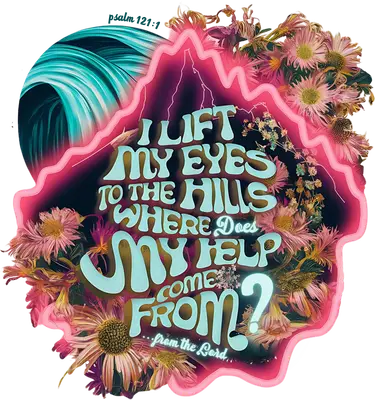 Embrace spiritual inspiration with this vibrant 'I Lift My Eyes To The Hills' DTF transfer, featuring Psalm 121:1. This striking design showcases a modern, groovy light blue typography set against a backdrop of deep blues and purples, outlined with a bright pink neon glow representing hills. Lush, detailed wildflowers in hues of pink, yellow, and orange burst forth, framed by a dynamic teal abstract swirl, creating a beautiful blend of faith and nature. This high-quality DTF transfer is ready to press, offering a unique and uplifting aesthetic for any garment. This inspirational heat transfer design is perfect for those seeking comfort and strength in their faith. Ideal for Christian apparel lines, Etsy sellers, small boutique owners creating uplifting pieces, or individuals looking for meaningful self-expression. It makes a thoughtful gift for friends, family, or church members for birthdays, Mother's Day, Confirmation, or simply to share a message of hope. Use this versatile iron on transfer for crafting personalized items for spiritual retreats, youth group shirts, or everyday wear that spreads positivity and faith. Applying this stunning heat press transfer is simple and efficient, suitable for a wide range of fabrics including cotton, polyester, cotton-poly blends, and even nylon. Achieve professional results with a heat press set to 300-325°F for 15 seconds with medium pressure, or easily apply with a household iron. There's no tedious weeding required—just peel and press! It's perfect for creating custom t-shirts, hoodies, sweatshirts, tote bags, pillow covers, baby onesies, aprons, and denim jackets. For lasting durability, wash garments inside out and tumble dry low. Experience superior quality with this ready to press transfer. It features vibrant, full-color printing that captures every fine detail of the intricate floral and textual elements. Enjoy a crack-resistant and soft-to-the-touch finish, without the heavy, stiff feel often associated with traditional vinyl. Each direct to film transfer is meticulously printed on premium DTF film with a strong adhesive backing, ensuring professional-grade results and long-lasting wear for all your apparel projects.