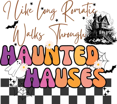 See allStep into the spooky season with a touch of humor with this "I Like Long Romantic Walks Through Haunted Houses" DTF transfer. This unique design features a playful script font for the sarcastic phrase, complemented by bold, retro-style bubbly letters for "HAUNTED HOUSES" in vibrant purple, pink, orange, and peach gradients. Accompanying the text are classic Halloween elements like a detailed haunted mansion, flying bats, whimsical spiderwebs, and a friendly little ghost, all balanced by unexpected cute daisies and a trendy checkerboard border. This ready to press transfer perfectly captures a fun, retro Halloween vibe. This design is perfect for anyone who loves Halloween, sarcastic humor, and a touch of retro flair. It's an ideal iron on transfer for crafting unique apparel for Halloween parties, fall festivals, or just showing off your spooky personality all season long. Small businesses, Etsy shop owners, and DIY enthusiasts creating custom t-shirts, sweatshirts, or tote bags will find this a fantastic heat transfer design to add to their inventory or personal projects. It makes a great gift for friends who appreciate quirky, spooky humor. Applying this heat press transfer is a breeze! It works beautifully on a wide range of materials including cotton, polyester, cotton-poly blends, and even nylon. For best results, use a heat press at 300-325°F for 15 seconds with medium pressure. No weeding or intricate layering is required – simply peel and press! This design is perfect for custom t-shirts, cozy hoodies, stylish tote bags, unique denim jackets, and even decorative pillow covers. For lasting durability, wash garments inside out and tumble dry on low heat. Experience superior quality with this ready to press transfer. Each transfer boasts vibrant, full-color printing that captures every fine detail, from the intricate haunted house to the subtle gradient in the lettering. Our direct to film transfers are crack-resistant, soft to the touch, and completely free from the heavy, stiff feel often associated with traditional vinyl. Printed on premium DTF film with a strong adhesive backing, you can achieve professional, eye-catching results on all your apparel and accessory projects every single time.