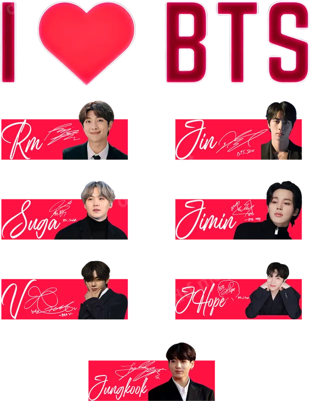 See allDeclare your devotion to your favorite K-Pop group with this vibrant "I ❤️ BTS" DTF transfer. This comprehensive design includes the iconic phrase with a bold red heart, alongside individual graphics for each of the seven beloved BTS members: RM, Jin, Suga, J-Hope, Jimin, V, and Jungkook. Each member's segment features a portrait, their stylized name in script, and their signature, all set against a striking red backdrop. This high-quality direct to film transfer is ready to press, making it simple to personalize your gear. This unique K-Pop heat transfer is perfect for the dedicated BTS ARMY, K-Pop enthusiasts, or anyone who loves pop culture fashion. Ideal for concerts, fan gatherings, casual wear, or as a thoughtful gift for a fellow fan. Whether you're celebrating a comeback, a birthday, or just showcasing your daily fandom, this heat press design lets you wear your heart on your sleeve, quite literally. Create custom apparel that stands out and connects you with the global BTS community. Our professional-grade DTF transfer is incredibly versatile and can be applied to a wide range of fabrics, including cotton, polyester, and various blends. Application is a breeze with a heat press (recommended 300-325°F for 15 seconds with medium pressure) or even a household iron, making it accessible for everyone. Say goodbye to tedious weeding, as these ready to press transfers offer a clean, seamless finish that's far superior to traditional vinyl transfer methods. Experience exceptional quality with a shirt design that boasts vibrant colors, excellent wash durability, and a soft, flexible feel on your garment. Each apparel transfer is crafted from durable film with a strong adhesive, ensuring your design resists cracking, peeling, and fading over time. Get professional results every time and enjoy a long-lasting, eye-catching addition to your custom wardrobe.