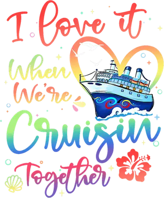 See allThis vibrant DTF transfer features the heartwarming phrase 'I love it When We're Cruisin' Together' in a beautiful rainbow gradient script, perfectly capturing the joy of travel. A charming cartoon cruise ship sails through a rainbow heart, accompanied by playful seagulls, a tropical hibiscus flower, and a seashell, all adding to the sunny vacation vibe. This ready to press design is bursting with color and intricate details, making it a delightful choice for anyone who cherishes their time at sea. This cruise-themed design is perfect for couples celebrating anniversaries, families planning matching vacation apparel, or friends embarking on a group cruise. It makes an ideal iron on transfer for honeymoon shirts, family reunion tees, or gifts for travel agents and cruise ship enthusiasts. Whether you're heading to the Caribbean or just dreaming of your next voyage, this heat transfer design adds a touch of wanderlust to any outfit, making memories even before you set sail. Applying this stunning heat press transfer is simple and efficient, compatible with cotton, polyester, cotton-poly blends, and even nylon fabrics. Achieve professional results using a heat press set at 300-325°F for just 15 seconds with medium pressure, or apply with a household iron. Forget tedious weeding; this easy-to-use iron on decal is perfect for custom t-shirts, cozy hoodies, stylish tote bags, unique pillow covers, or even baby onesies for the littlest cruisers. For lasting vibrancy, wash garments inside out and tumble dry on low heat. Experience premium quality with this ready to press transfer, featuring vibrant, full-color printing that captures every fine detail of the artwork. Our apparel transfers are crack-resistant, soft to the touch, and avoid the heavy, stiff feel often associated with vinyl transfers. Each direct to film transfer is meticulously printed on high-grade DTF film, engineered with a robust adhesive backing to ensure a flawless and durable application, providing professional-grade results for all your garment customization projects.