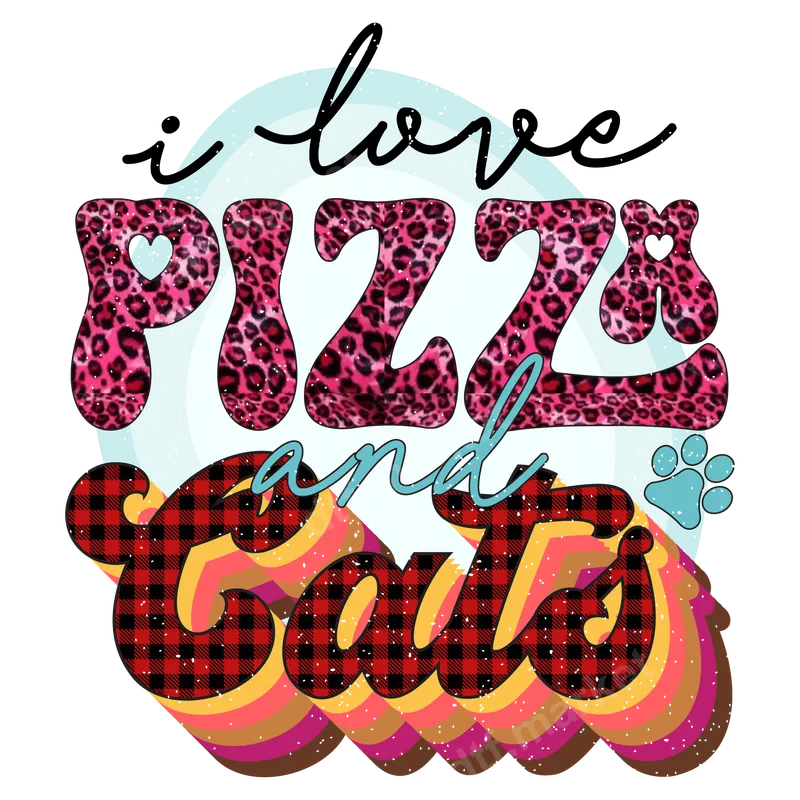 See allDeclare your twin passions with this fun and quirky "I love PIZZA and Cats" DTF transfer. This eye-catching direct to film transfer features the word "PIZZA" in a playful, bubbly font with a trendy pink leopard print, while "Cats" boasts a cozy red and black buffalo plaid pattern with a retro layered shadow effect. The design is rounded out with a whimsical script for "i love" and "and," and a cute paw print accent. This ready to press design is perfect for adding a touch of personality to any garment. This vibrant design is ideal for cat moms, pizza enthusiasts, and anyone who loves a touch of retro style. It makes a fantastic gift for birthdays, casual gatherings, or simply to express your unique interests. Surprise a friend or treat yourself to this fun apparel transfer that perfectly captures two of life's greatest joys. This design is sure to be a conversation starter and bring a smile to anyone's face. Applying this heat transfer is simple and efficient. Our high-quality transfers work beautifully on a wide range of materials, including 100% cotton, 100% polyester, and various cotton/poly blends. For best results, use a heat press at 300-325°F for 15 seconds with medium pressure, then cold peel. A household iron can also be used with careful application. Best of all, there's no weeding required, making your crafting process quick and enjoyable. Experience professional-grade results with our premium DTF film. This durable heat press design ensures vibrant colors, excellent wash durability, and a soft, flexible feel that won't crack or peel over time. The strong adhesive guarantees a long-lasting finish, making your custom creations look fantastic wear after wear. Transform ordinary apparel into extraordinary statements with this high-quality iron on transfer.