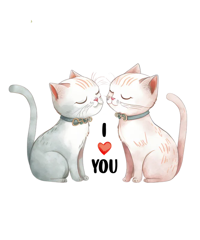 I Love You Cute Cats DTF Transfer - Romantic Couple Kittens