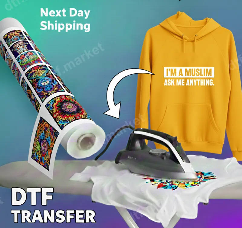 See allThis impactful "I'm a Muslim Ask Me Anything" DTF transfer is a powerful statement of identity and an invitation for open dialogue. Featuring bold, clear typography, this ready to press transfer allows you to express yourself with pride and encourage understanding. It's a high-quality direct to film transfer, perfect for creating custom apparel that sparks conversation and builds bridges. Ideal for Muslims seeking to share their faith, this design is perfect for community events, interfaith gatherings, or everyday wear to foster curiosity and education. It makes a thoughtful gift for friends and family during Eid, Ramadan, or any occasion to celebrate identity and promote unity. This unique heat press design is a wonderful way to personalize your wardrobe and open conversations. Applying your "I'm a Muslim Ask Me Anything" heat transfer is simple with either a heat press or a household iron. For best results, use a heat press at 300-325°F for 15 seconds with medium pressure, then cold peel the film. No intricate weeding is required, saving you time and effort. This versatile iron on decal adheres beautifully to cotton, polyester, and most fabric blends. Crafted for durability and exceptional finish, our t-shirt transfers boast vibrant, true-to-color results that are crack-resistant and soft to the touch. Each apparel transfer is made using professional-grade DTF film and strong adhesive, ensuring your design withstands countless washes. Enjoy a professional-quality, long-lasting design that looks great on any garment.