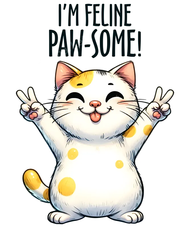 See allEmbrace purr-fect positivity with this adorable 'I'M FELINE PAW-SOME!' DTF transfer. Featuring a charming, chubby cartoon cat flashing peace signs and a playful tongue, this design is bursting with cheerful energy and a witty pun. It's a vibrant, ready to press image that brings instant joy to any garment, making it an excellent choice for anyone who loves their furry friends. This delightful direct to film transfer is an absolute must-have for cat lovers, pet owners, and anyone who appreciates a good laugh. It makes a fantastic gift for birthdays, holidays, or just because, perfect for a cat mom, cat dad, or a friend with a feline obsession. Elevate your wardrobe or create unique presents that stand out with this 'paw-some' design. Applying this high-quality heat transfer is simple and efficient. It works beautifully on a wide range of materials, including cotton, polyester, and their blends. For best results, use a heat press at 300-325°F for 15 seconds with medium pressure. A household iron can also be used following detailed instructions. Enjoy the convenience of a durable iron on transfer with absolutely no weeding required. Experience exceptional quality with our professional DTF transfers. This apparel transfer boasts vivid colors, incredible detail, and a soft, flexible feel that resists cracking and peeling, ensuring your design looks great wash after wash. The strong adhesive ensures a lasting bond, creating custom t-shirts, hoodies, or tote bags that truly shine.