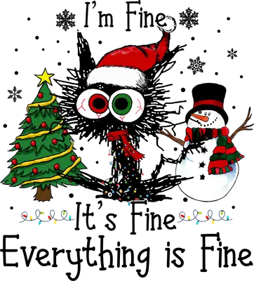 I'm Fine Everything is Fine Funny Stressed Christmas Cat DTF Transfer