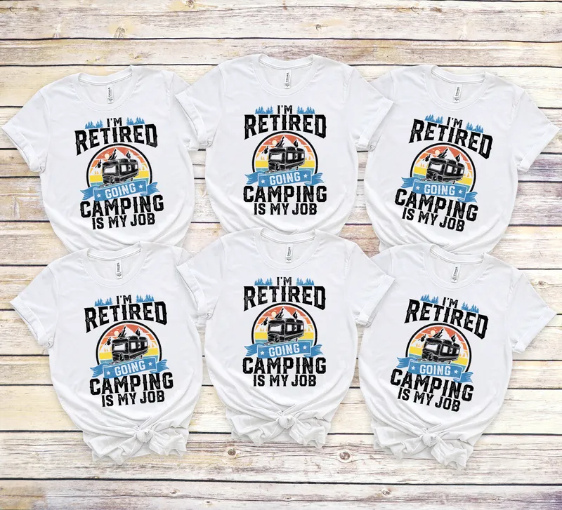 See allEmbrace the ultimate retirement dream with our "I'm Retired Going Camping is My Job" DTF transfer. This vibrant design features a classic RV camper set against a backdrop of scenic mountains and a warm sunset, topped with pine trees. The bold, rustic typography and playful message capture the spirit of freedom and outdoor adventure. This high-quality DTF transfer is ready to press, making it simple to create personalized apparel for your next journey. This humorous design is perfect for retirees, avid campers, RV owners, and anyone who loves the great outdoors. It makes an excellent gift for dads, grandpas, or friends celebrating retirement, Father's Day, birthdays, or just a fun camping trip. Show off your newfound "job" with a unique t-shirt transfer that truly reflects your passion for adventure and leisure. It's a fantastic conversation starter for any campground. Applying this heat transfer is effortless. Our durable DTF transfers work seamlessly on a wide range of fabrics, including cotton, polyester, and various blends. For best results, use a heat press at 300-325°F for 15 seconds with medium pressure, then peel cold. You can even apply it with a household iron (follow instructions carefully). No tedious weeding or layering is required, making customization quick and simple for everyone. Experience professional-grade results with our premium DTF film. Each transfer boasts exceptionally vibrant colors, a soft hand feel, and outstanding durability that resists cracking and fading after multiple washes. Your finished garments will look fantastic and last for years, providing a comfortable and stylish way to express your retired camping lifestyle.