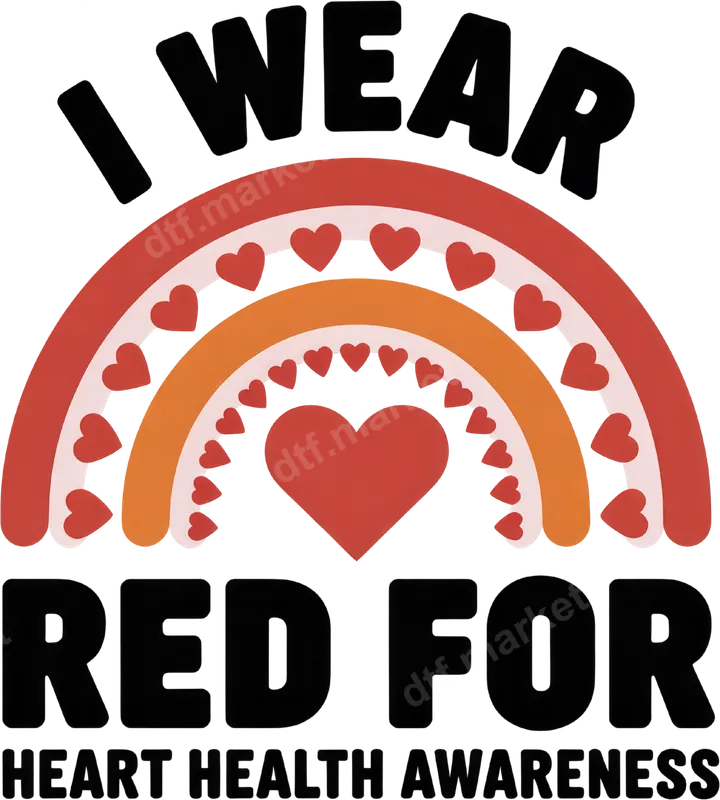 See allShow your unwavering support for a crucial cause with our "I Wear Red For Heart Health Awareness" DTF transfer. This vibrant design features bold typography framed by a heartwarming rainbow of red, orange, and light pink arcs, adorned with multiple small hearts and a prominent central heart. It's a powerful and meaningful statement, delivered as a ready to press heat transfer that makes customizing your apparel simple and impactful. This heart health heat press transfer is perfect for advocates, survivors, caregivers, medical professionals, or anyone wanting to raise awareness and support for cardiovascular health. Ideal for Heart Health Month in February, charity walks, fundraising events, or as an everyday reminder of a vital cause. It also makes a thoughtful and impactful gift for friends and family members touched by heart disease. Our premium direct to film transfer is designed for effortless application on a wide range of fabric types, including cotton, polyester, and various blends. Achieve professional results using a heat press at 300-325°F for 15 seconds with medium pressure, or apply with a household iron. Enjoy the convenience of a durable, crack-resistant iron on decal with no weeding required, making your crafting projects quick and enjoyable. Experience exceptional quality with every DTF transfer. Our designs are known for their vibrant colors, excellent wash durability, and a soft, flexible feel that seamlessly integrates with your garment. Crafted with professional-grade DTF film and strong adhesive, this t-shirt transfer ensures a long-lasting, high-quality finish on all your custom apparel and accessories.