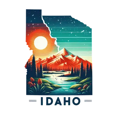 Idaho State Outline Scenic Mountains Lake Sunset DTF Transfer