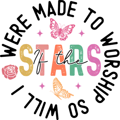 See allThis uplifting "If the Stars Were Made to Worship So Will I" DTF transfer captures a beautiful message of faith and devotion. Featuring colorful, distressed typography for "STARS" accented with delicate butterflies and a rose, this design brings a vibrant, joyful aesthetic. It’s a perfect ready to press design to personalize your apparel and accessories with a spiritual touch. This inspirational design is perfect for women's church groups, youth ministry events, or anyone who wants to showcase their faith in a stylish way. It makes a thoughtful gift for birthdays, confirmation, or just because. Small business owners creating Christian apparel will find this iron on transfer a popular choice for custom shirts, while crafters can easily apply this heat transfer design to create unique gifts. Applying this heat press transfer is simple and efficient. It adheres beautifully to cotton, polyester, cotton-poly blends, and even nylon, requiring just a heat press (300-325°F for 15 seconds, medium pressure) or a household iron. Forget weeding—this design is ready to peel and press. Transform custom t-shirts, hoodies, sweatshirts, tote bags, pillow covers, and denim jackets. For lasting durability, wash garments inside out and tumble dry on low heat. Experience professional results with this premium ready to press transfer. It features vibrant, full-color printing with exceptional fine detail, ensuring your design stands out. Our direct to film transfer is crack-resistant and soft to the touch, avoiding that heavy vinyl feel. Each apparel transfer is printed on high-quality DTF film with a strong adhesive backing, guaranteeing a flawless application every time.
