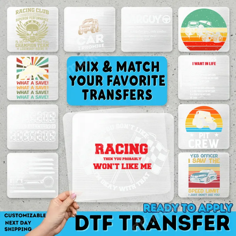 See allExpress your passion for speed with our 'If You Don't Like Racing Then You Probably Won't Like Me' DTF transfer. This eye-catching design features a powerful message in bold red and white, complemented by an iconic checkered flag. It's the ultimate statement for anyone who lives and breathes motorsports. Crafted for convenience, this direct to film transfer is ready to press, making it simple to create personalized apparel. This unique heat press design is perfect for car enthusiasts, racing drivers, pit crew, and anyone enjoying the thrill of the track. It makes an excellent gift for birthdays, Father's Day, or just because, for friends and family who love high-octane action. Showcase your personality at race events, car shows, or as everyday wear. It’s also a fantastic iron on transfer for crafting personalized gifts for your crew. Our premium DTF transfer adheres beautifully to a wide range of fabrics including cotton, polyester, and blends. Application is a breeze; use a heat press at 300-325°F for 15 seconds with medium pressure, then peel cold. For smaller projects, a household iron can also be used. Unlike vinyl transfer methods, there's no weeding involved, saving you time and effort for a perfect finish. Experience professional quality with every custom transfer from dtf.market. Our DTF transfers boast vibrant, crack-resistant colors and a soft-to-the-touch feel, ensuring your garment is comfortable and durable through countless washes. Each heat press ready design is printed on high-quality DTF film with strong adhesive, guaranteeing a lasting bond to your chosen apparel.